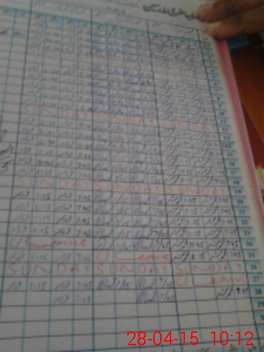 | CNIC | Full Name | Designation | R/C | Absence During Last Calender Month |