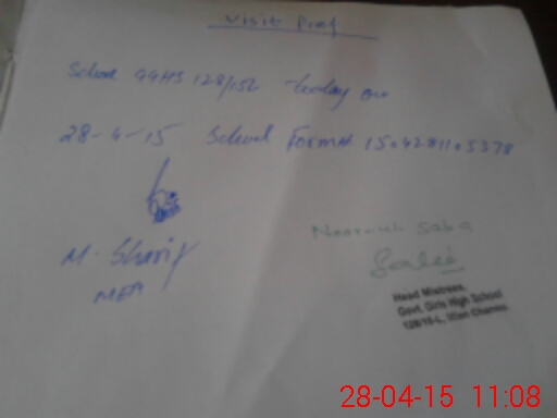 | EMIS Code: 36430097 | Name of School: GGHS 128/15-L MIAN CHANNU | |||