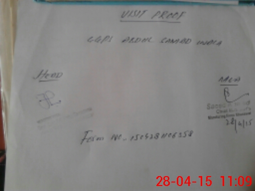| Monitoring Date: 28-04-2015 | Start Time: 28-04-2015 10:11 AM | End Time: 28-04-2015 11:13 AM | Name of MEA: Sa**** Ah**** | |