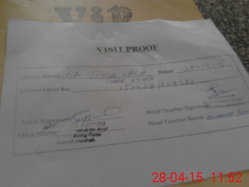 | Attendance Register | Head Teacher | MEA with School | Visit Proof |
