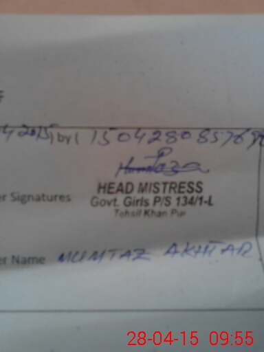 | Name: Si**** Sa**** Designation: (School Headmaster's/Headmistress's) EST Phone/Cell Number: 03**** |