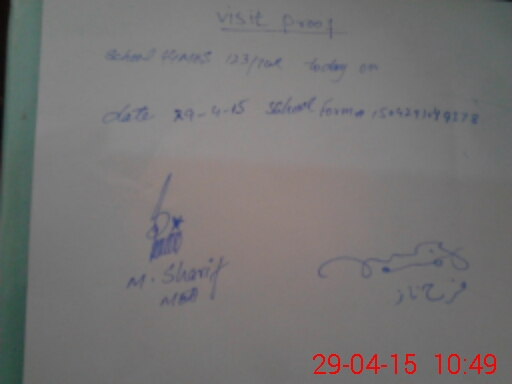 | School Visited by School Health & Nutrition Supervisor (No. of Visits) | 1 | Name1: | Javed Akhtar | Name2: | |