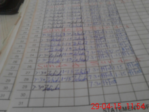 | Monitoring Date: 29-04-2015 | Start Time: 29-04-2015 11:44 AM | End Time: 29-04-2015 11:57 AM | Name of MEA: Mu**** As**** | |