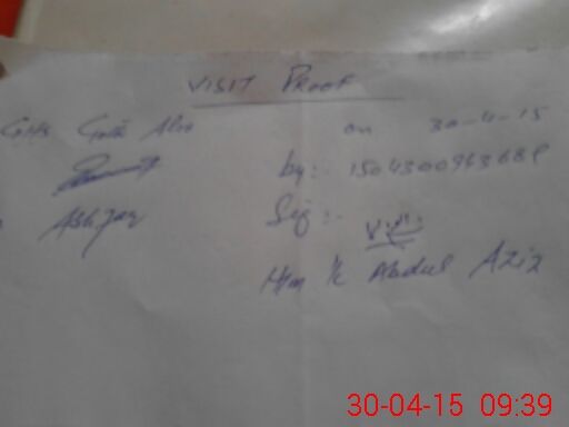 | Monitoring Date: 30-04-2015 | Start Time: 30-04-2015 09:08 AM | End Time: 30-04-2015 09:41 AM | Name of MEA: Mu**** As**** | |