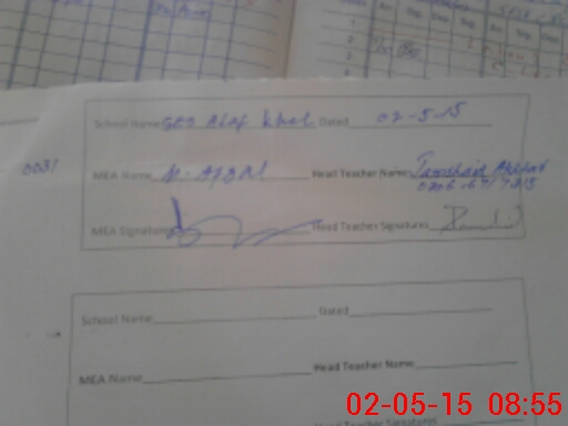 | Attendance Register | Head Teacher | MEA with School | Visit Proof |