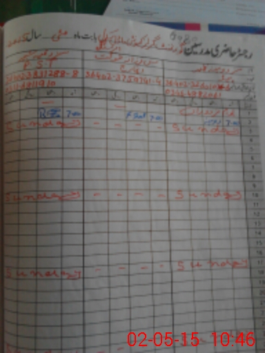 | CNIC | Full Name | Designation | R/C | Absence During Last Calender Month |