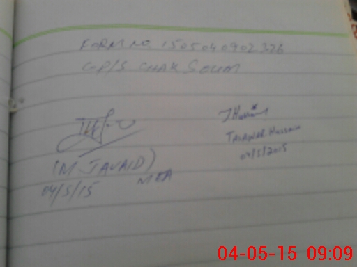 | Monitoring Date: 04-05-2015 | Start Time: 04-05-2015 08:51 AM | End Time: 04-05-2015 09:12 AM | Name of MEA: S-**** MO**** JA**** AK**** (T**** | |