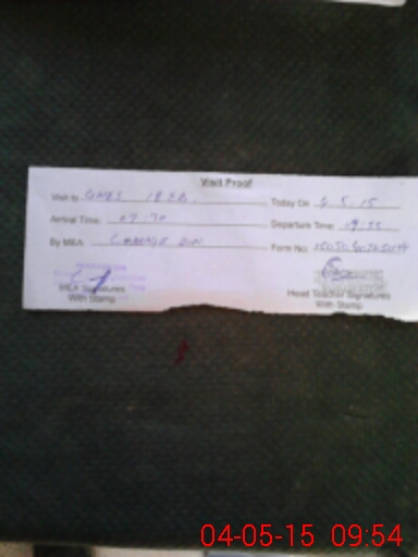 | Monitoring Date: 04-05-2015 | Start Time: 04-05-2015 07:25 AM | End Time: 04-05-2015 09:55 AM | Name of MEA: Ch**** Di**** | |