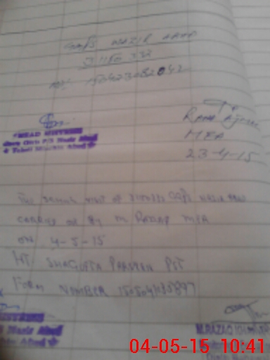 | Monitoring Date: 04-05-2015 | Start Time: 04-05-2015 10:23 AM | End Time: 04-05-2015 10:42 AM | Name of MEA: Mu**** Ra**** Kh**** BN**** | |
