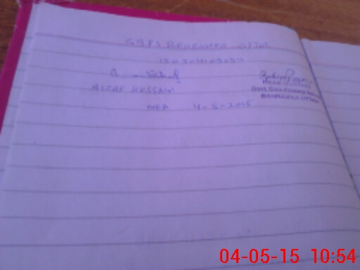 | Monitoring Date: 04-05-2015 | Start Time: 04-05-2015 10:26 AM | End Time: 04-05-2015 10:54 AM | Name of MEA: Al**** Hu**** BN**** | |