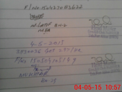 | Name: Mu**** Uz**** Ar**** Designation: (School Headmaster's/Headmistress's) SST CS Phone/Cell Number: 03**** |