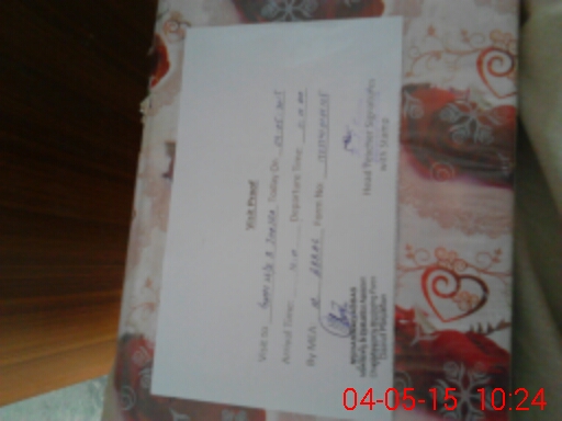 | Monitoring Date: 04-05-2015 | Start Time: 04-05-2015 10:10 AM | End Time: 04-05-2015 10:24 AM | Name of MEA: Mu**** Ab**** | |