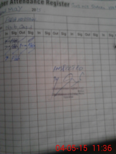 | Monitoring Date: 04-05-2015 | Start Time: 04-05-2015 11:07 AM | End Time: 04-05-2015 11:41 AM | Name of MEA: MU**** IQ**** AS**** | |