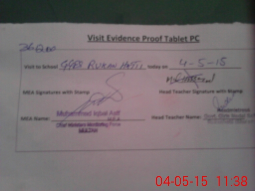 | Attendance Register | Head Teacher | MEA with School | Visit Proof |