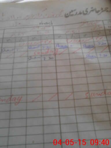 | CNIC | Full Name | Designation | R/C | Absence During Last Calender Month |