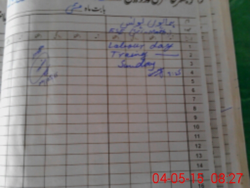 | Monitoring Date: 04-05-2015 | Start Time: 04-05-2015 07:55 AM | End Time: 04-05-2015 08:42 AM | Name of MEA: Za**** Ab**** | |