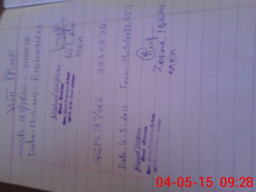 | Monitoring Date: 04-05-2015 | Start Time: 04-05-2015 08:55 AM | End Time: 04-05-2015 09:34 AM | Name of MEA: Za**** Iq**** BN**** | |