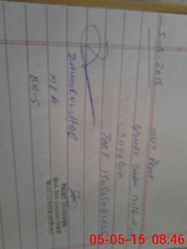 | Monitoring Date: 05-05-2015 | Start Time: 05-05-2015 08:05 AM | End Time: 05-05-2015 08:55 AM | Name of MEA: Za**** BN**** | |