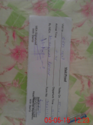 | Monitoring Date: 05-05-2015 | Start Time: 05-05-2015 12:05 PM | End Time: 05-05-2015 12:24 PM | Name of MEA: Mu**** Ra**** | |