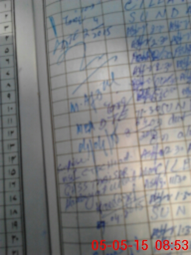 | Monitoring Date: 05-05-2015 | Start Time: 05-05-2015 08:44 AM | End Time: 05-05-2015 08:53 AM | Name of MEA: Mo**** Sa**** (R**** | |