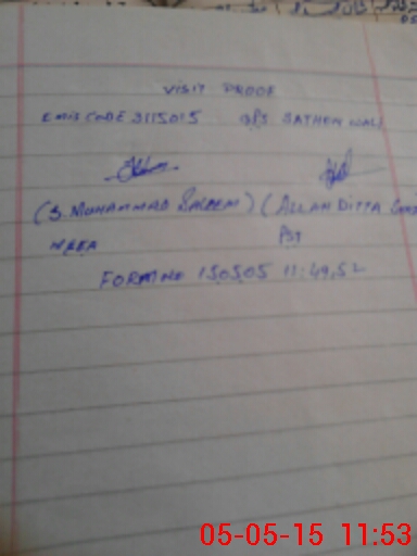 | School Visited by School Health & Nutrition Supervisor (No. of Visits) | Name1: | SARFARAZ | Name2: | ||