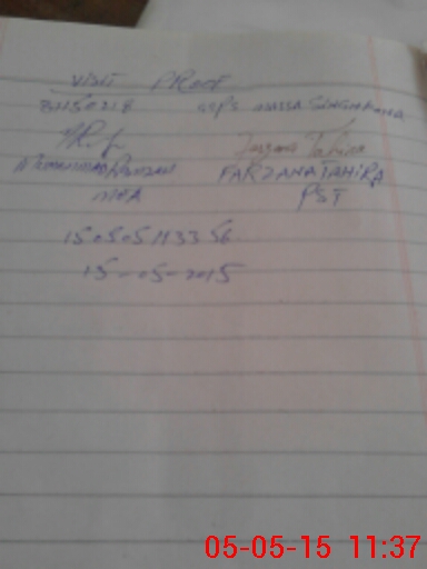 | School Visited by School Health & Nutrition Supervisor (No. of Visits) | 1 | Name1: | MASOOD YASIN | Name2: | |