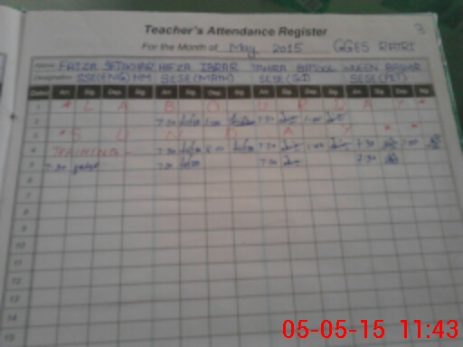 | CNIC | Full Name | Designation | R/C | Absence During Last Calender Month |