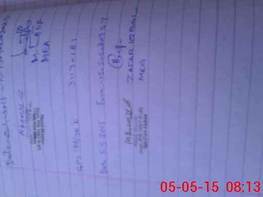 | Monitoring Date: 05-05-2015 | Start Time: 05-05-2015 07:45 AM | End Time: 05-05-2015 08:27 AM | Name of MEA: Za**** Iq**** BN**** | |