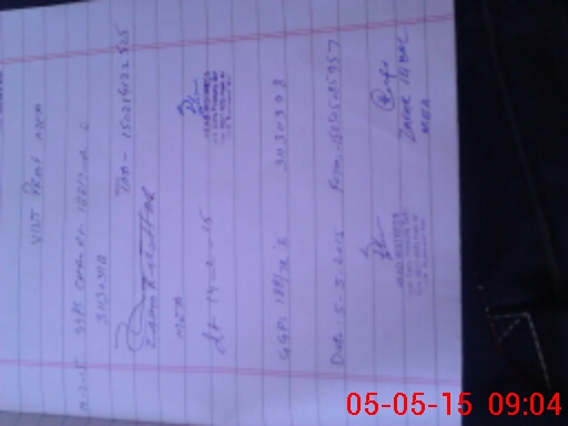 | Monitoring Date: 05-05-2015 | Start Time: 05-05-2015 08:33 AM | End Time: 05-05-2015 09:09 AM | Name of MEA: Za**** Iq**** BN**** | |