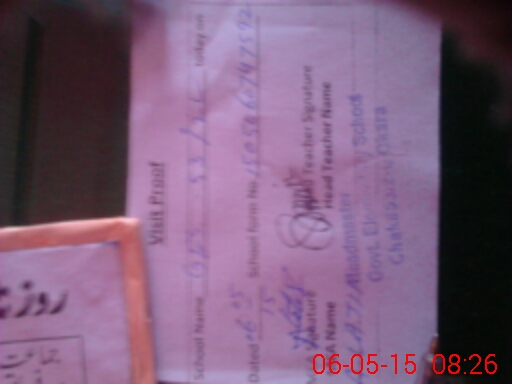 | School Visited by School Health & Nutrition Supervisor (No. of Visits) | 1 | Name1: | Abdul Sattar | Name2: | |