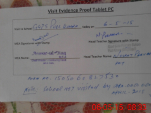 | Remarks (Use Separate Page if Required): School not visited by distt administration in april 2015 | |||||