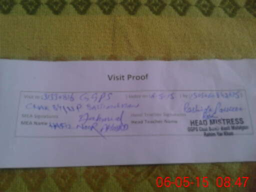| Attendance Register | Head Teacher | MEA with School | Visit Proof |