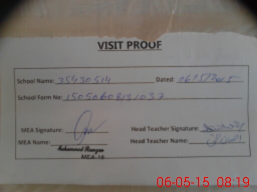 | Attendance Register | Head Teacher | MEA with School | Visit Proof |
