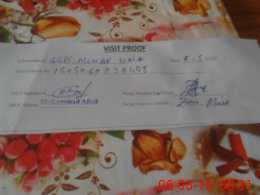 | Attendance Register | Head Teacher | MEA with School | Visit Proof |