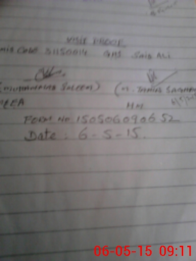 | Monitoring Date: 06-05-2015 | Start Time: 06-05-2015 07:51 AM | End Time: 06-05-2015 09:11 AM | Name of MEA: Mu**** Sa**** BN**** 33 | |