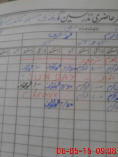 | CNIC | Full Name | Designation | R/C | Absence During Last Calender Month |