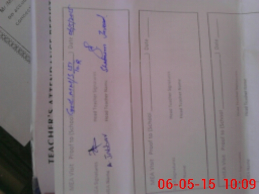 | Attendance Register | Head Teacher | MEA with School | Visit Proof |
