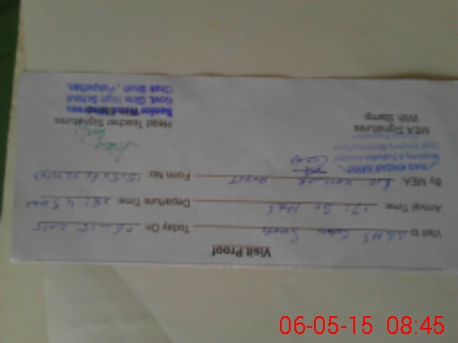 | Monitoring Date: 06-05-2015 | Start Time: 06-05-2015 07:27 AM | End Time: 06-05-2015 08:50 AM | Name of MEA: Kh**** Ha**** (R**** | |