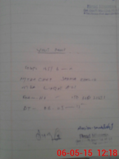 | Monitoring Date: 06-05-2015 | Start Time: 06-05-2015 12:01 PM | End Time: 06-05-2015 12:19 PM | Name of MEA: Li**** Al**** BN**** 11 | |