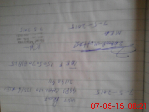 | Monitoring Date: 07-05-2015 | Start Time: 07-05-2015 07:58 AM | End Time: 07-05-2015 08:26 AM | Name of MEA: Za**** BN**** | |