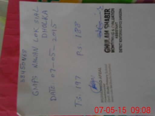 | EMIS Code: 38450468 | Name of School: GMPS NAWAN LOK SIAL DHOLKA | |||