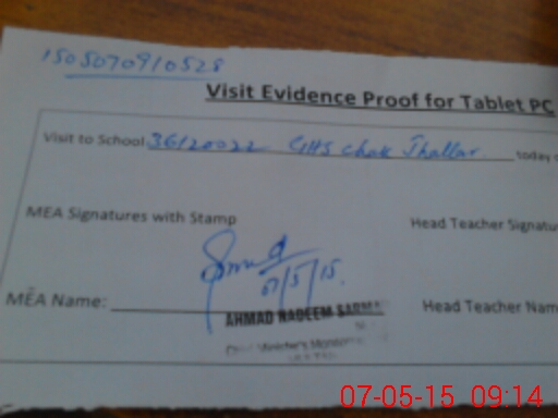 | Attendance Register | Head Teacher | MEA with School | Visit Proof |