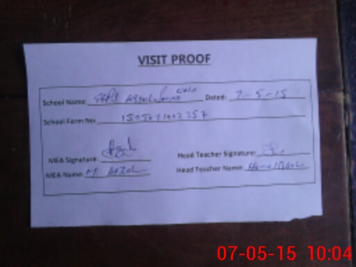 | Attendance Register | Head Teacher | MEA with School | Visit Proof |