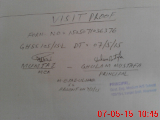| Certified that this School was Inspected by the Undersigned MEA/DMO Today and the Information Stated Above is as Per Record. | |||||