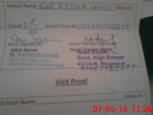 | EMIS Code: 36420015 | Name of School: GHS 45/10-R, KHANEWAL | |||