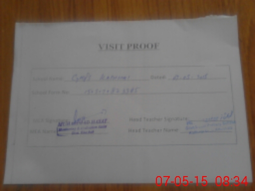 | Attendance Register | Head Teacher | MEA with School | Visit Proof |