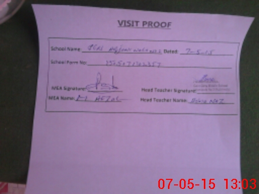 | Attendance Register | Head Teacher | MEA with School | Visit Proof |