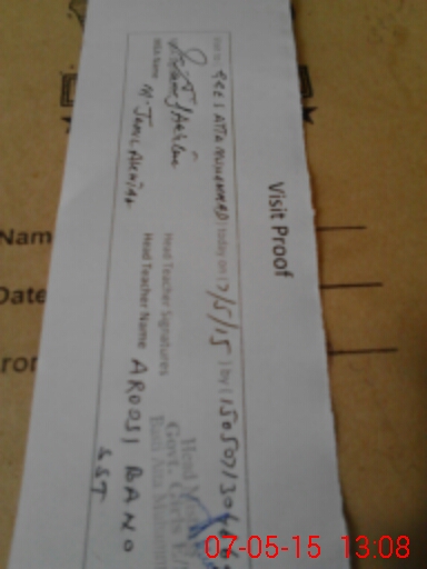 | School Visited by School Health & Nutrition Supervisor (No. of Visits) | 1 | Name1: | Irfan Mehmood | Name2: | Nil |