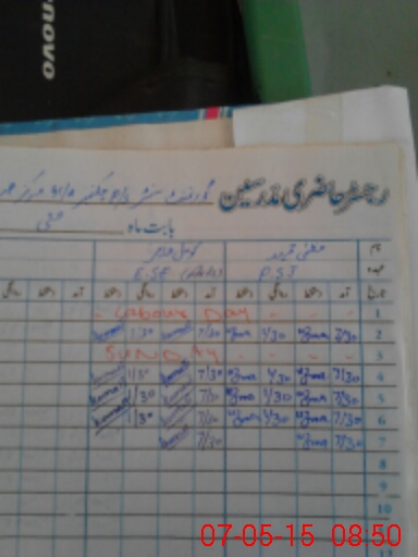| Monitoring Date: 07-05-2015 | Start Time: 07-05-2015 08:26 AM | End Time: 07-05-2015 08:52 AM | Name of MEA: Kh**** Fa**** | |