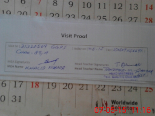 | Attendance Register | Head Teacher | MEA with School | Visit Proof |